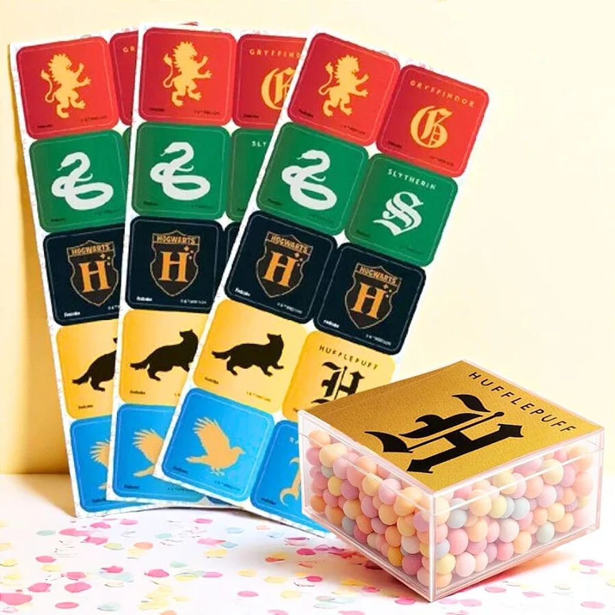 Adesivos com cores vibrantes e detalhes fiéis aos personagens e símbolos do universo Harry Potter.