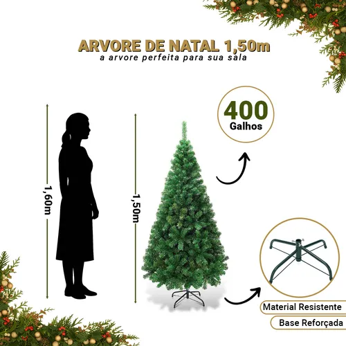 Sua cor verde clássico proporciona uma base perfeita para qualquer estilo de ornamentação natalina, desde o tradicional ao moderno.