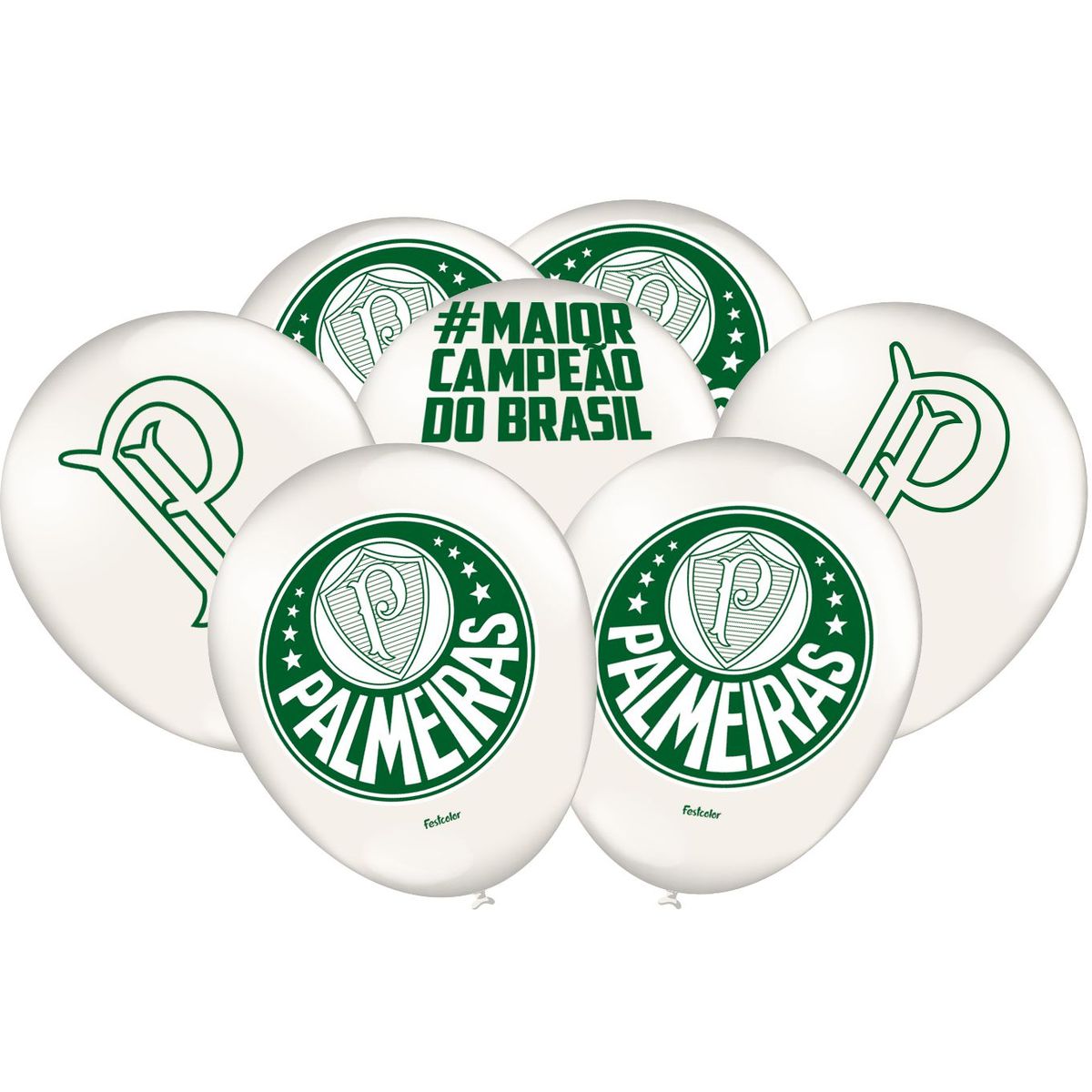 Os balões decorativos possuem a cor branca, que pode ser facilmente combinada com as cores oficiais do Palmeiras, como verde, para criar um contraste marcante.