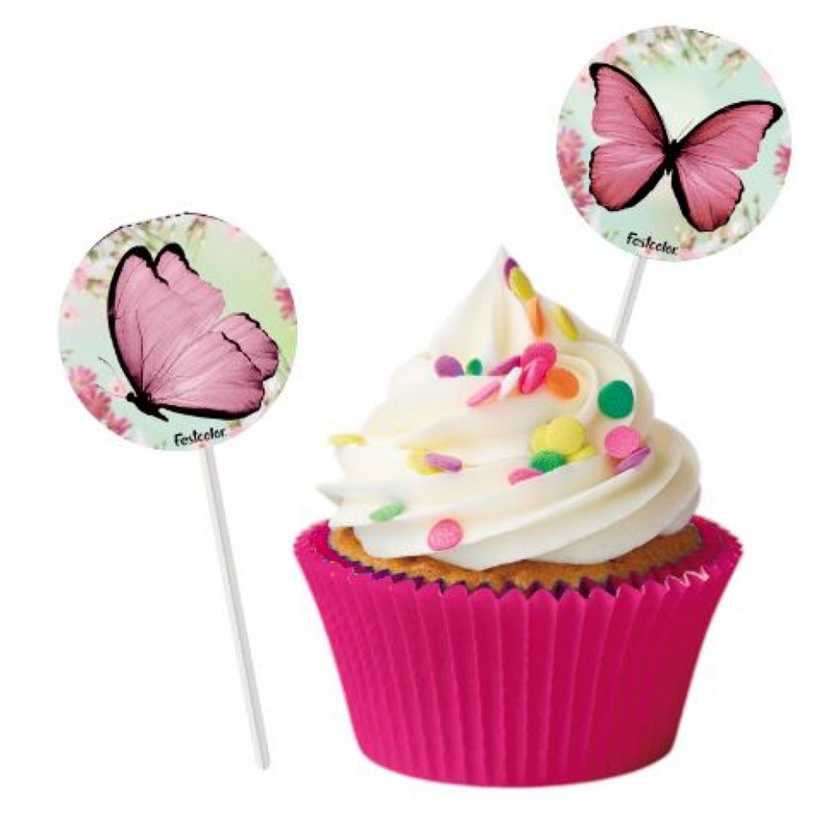 Adicione um toque de delicadeza e encanto à sua mesa de doces com a Bandeirinha Doces Jardim das Borboletas C/8 da Festcolor, perfeita para decorações de festa.