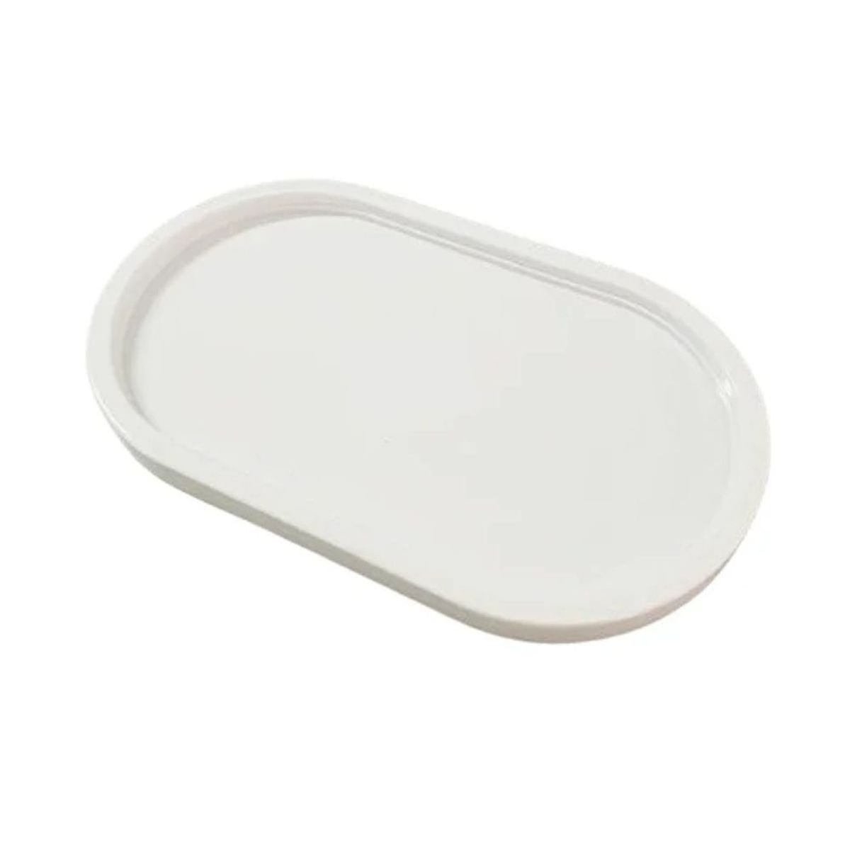 Design oval moderno e cor branca que se adapta facilmente a qualquer tema de festa ou decoração, agregando um toque de elegância.
