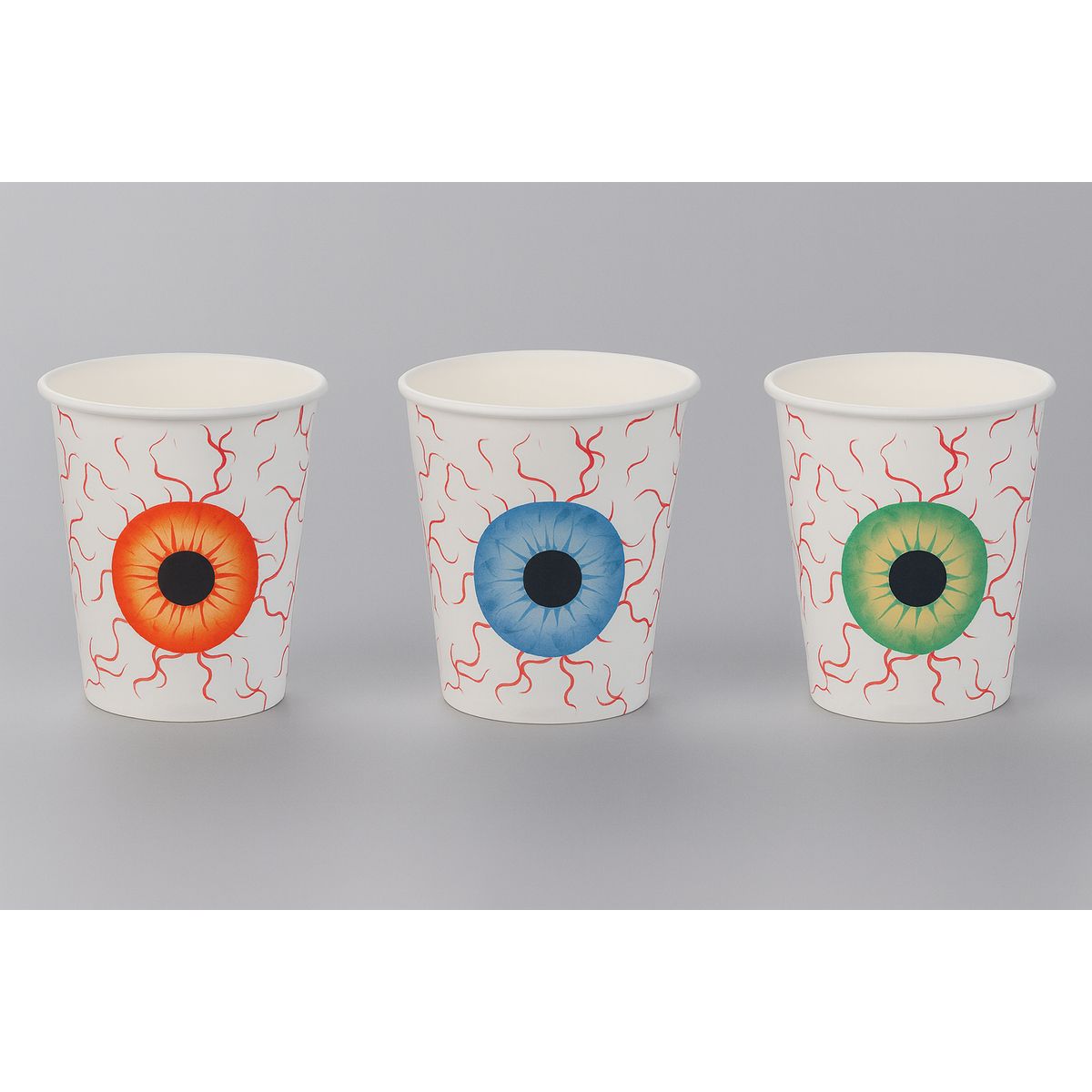 Utilize o Copo Papel Halloween Olhos para servir bebidas frias ou mornas (abaixo de 60°C) em suas festas de Halloween.
