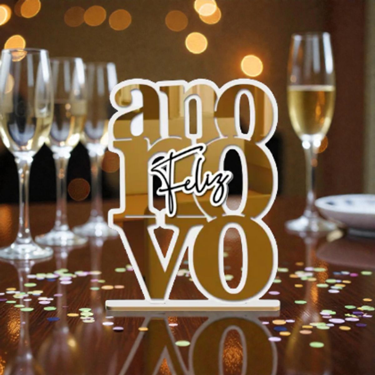 Celebre a chegada do ano novo com o ENFEITE MESA MDF FELIZ ANO NOVO da Grinfest, perfeito para criar uma decoração festiva e elegante em sua mesa.