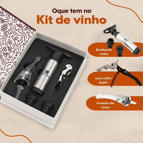 Cada peça do conjunto é projetada para proporcionar uma experiência de degustação mais agradável, desde a abertura até o serviço do vinho.