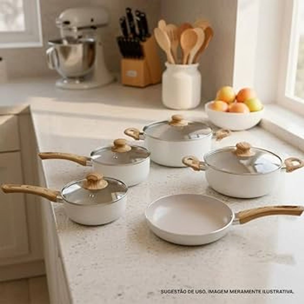 Prepare suas refeições com eficiência e estilo com o Jogo de Panelas de Indução BRINOX Areia C/5 Peças, perfeito para cozinhas modernas.