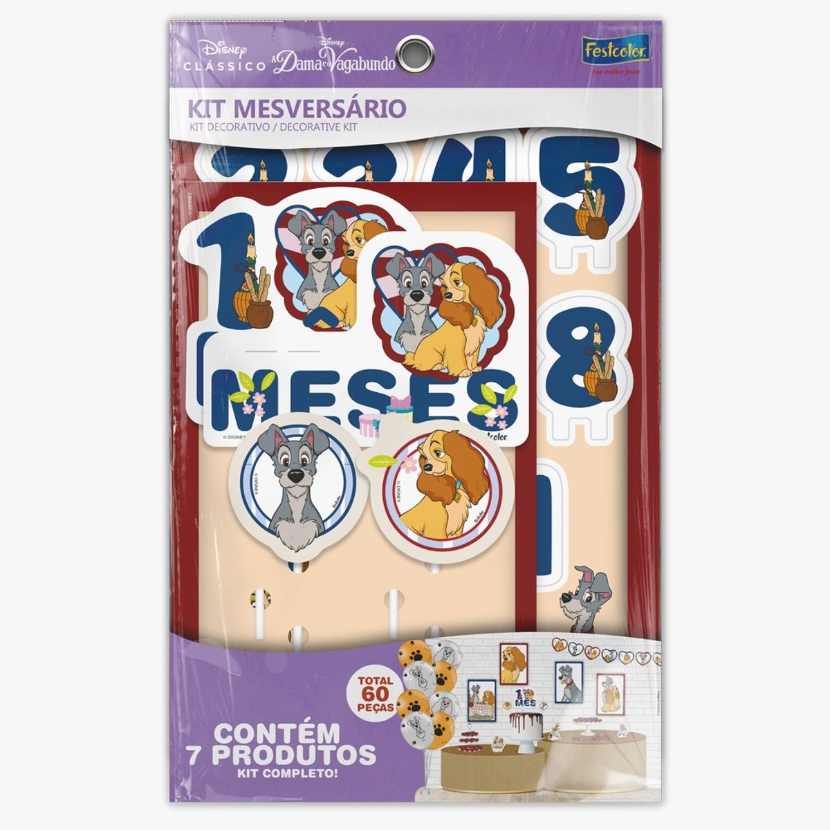 Celebre cada mês do seu bebê com o encantador KIT MESVERSÁRIO A DAMA E O VAGABUNDO C/60 da Festcolor, perfeito para tornar suas festas temáticas inesquecíveis.
