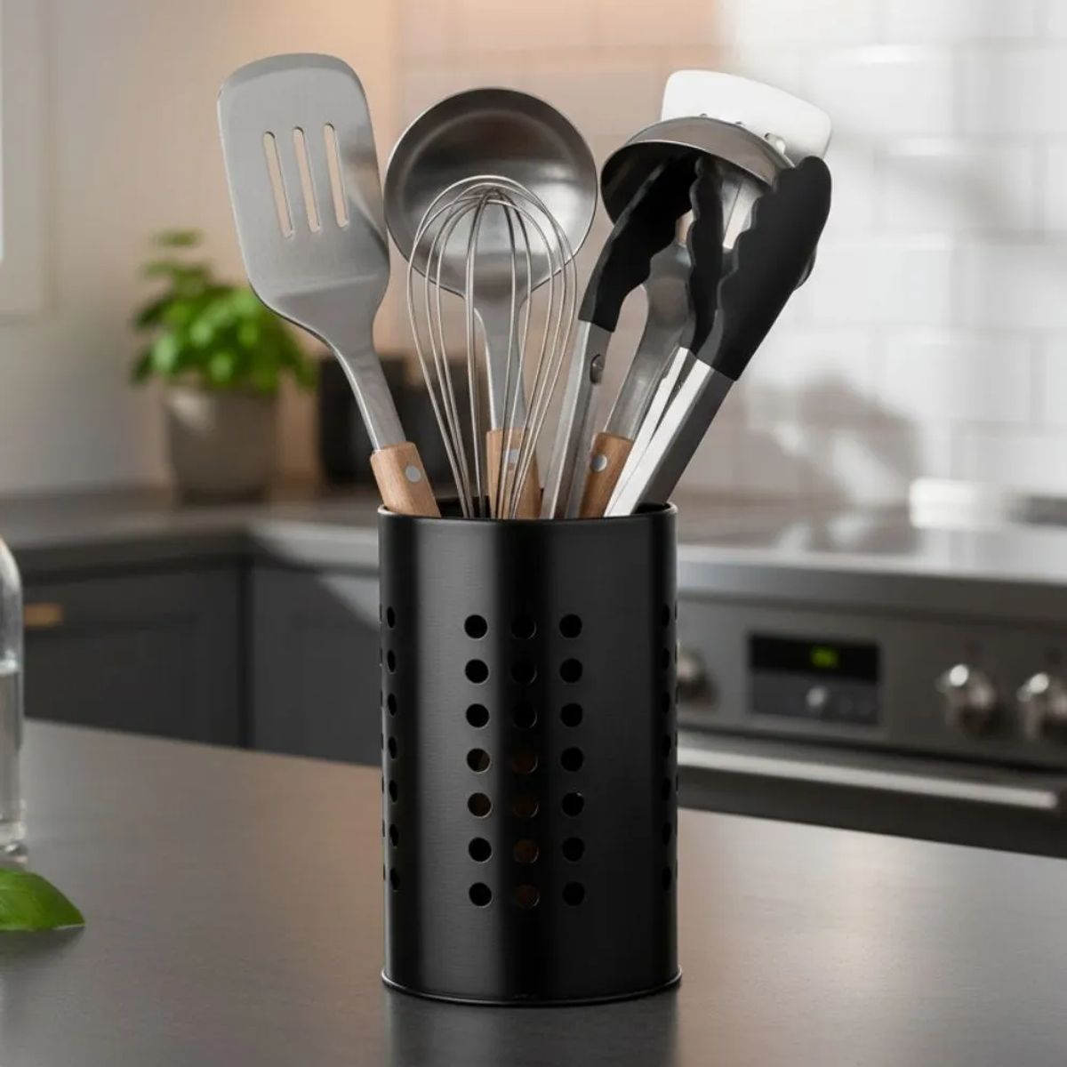 É ideal para organizar utensílios de cozinha como colheres, conchas e espátulas, mantendo sua bancada sempre arrumada e funcional.